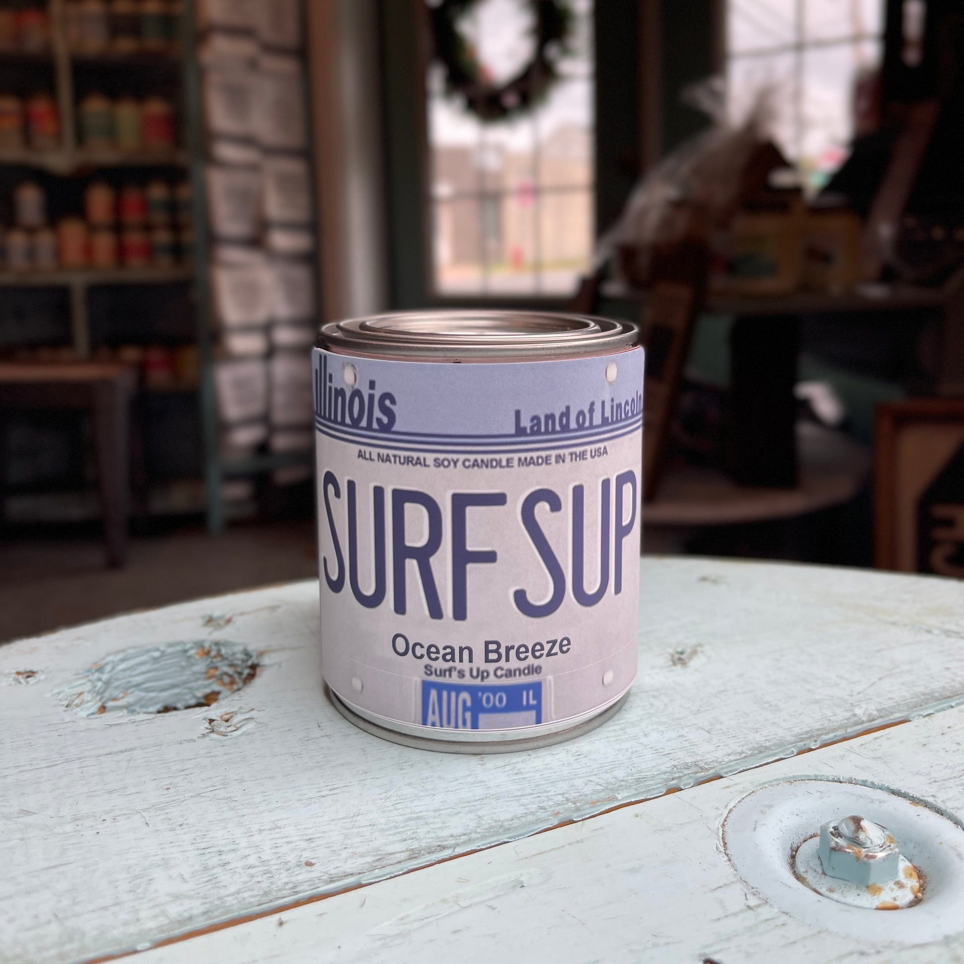 Illinois License Plate Ocean Breeze Paint Can Candle