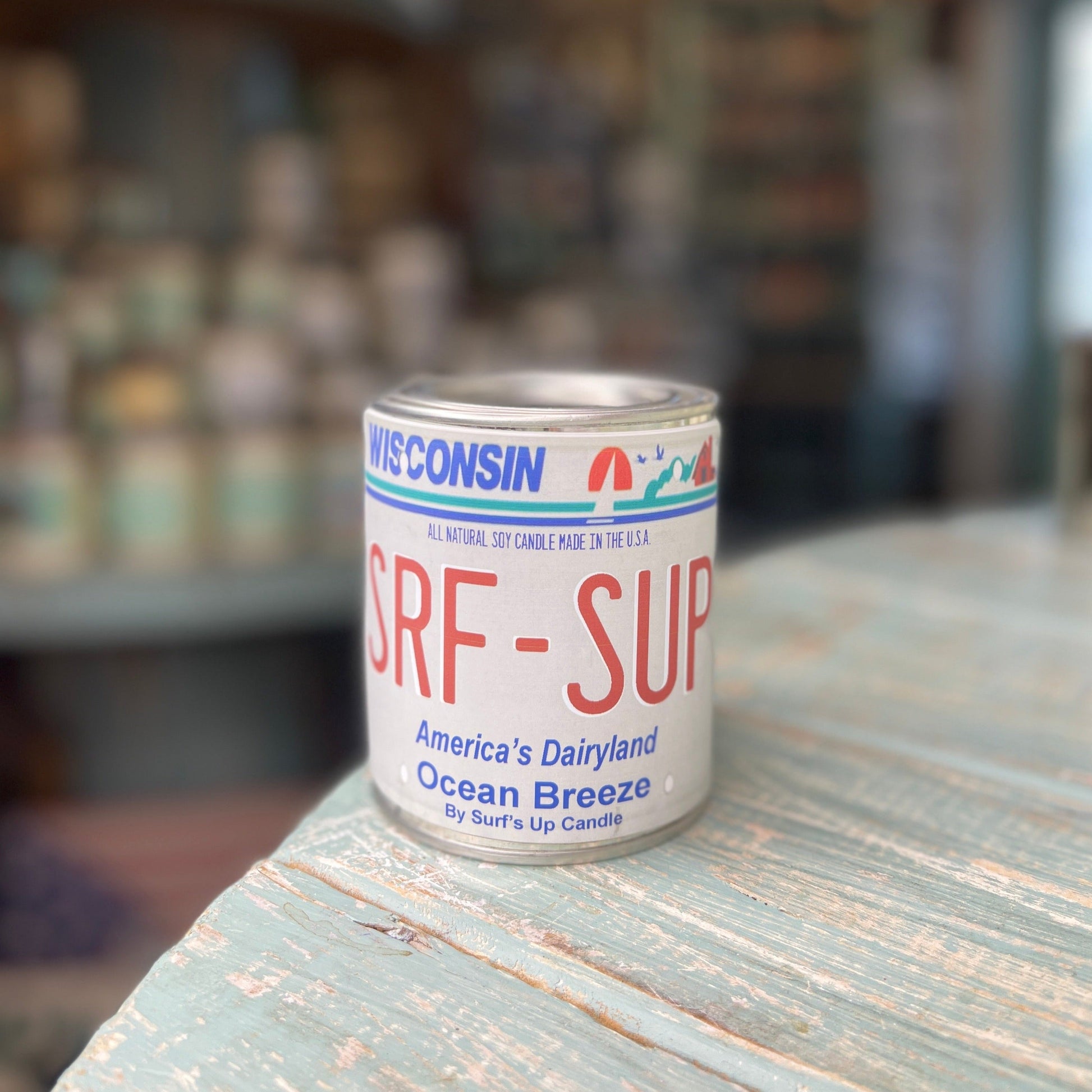 Wisconsin License Plate Ocean Breeze Paint Can Candle